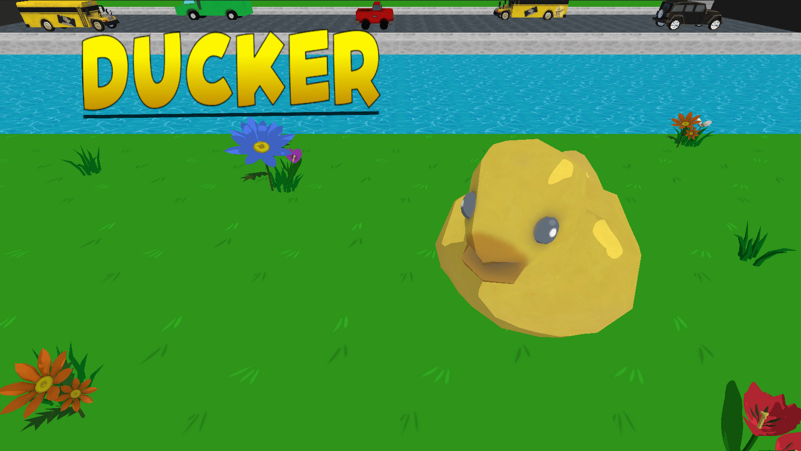 Ducker is a 3D adaptation of Frogger made in Unity. The player must navigate safely through busy streets and jump across obstacles on rushing water to reach the end five times, placing a duck in each cove. There are two levels presenting the player with two different types of environments: one that replicates the original layout of Frogger's first level, and one water level for added difficulty.